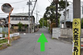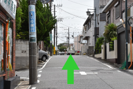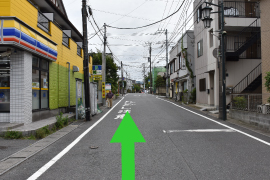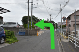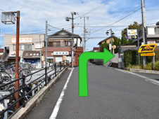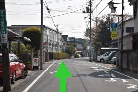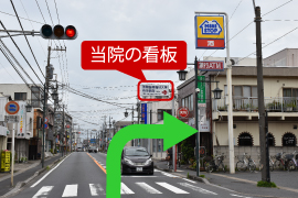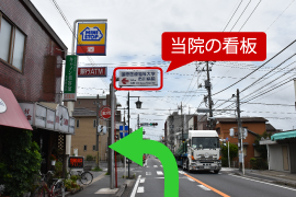 松戸街道を市川方面からお越しの方は矢切駅前を通り過ぎてから、ミニストップのある交差点を右折