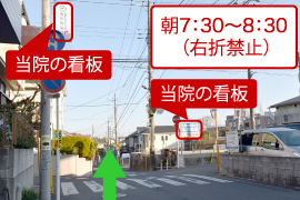 - ※日曜・休日を除く7:30~8:30は、正門前の道路が一方通行となりますので、ご注意ください。