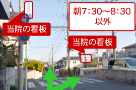 (1) 朝7:30~8:30・・・直進(この時間帯は