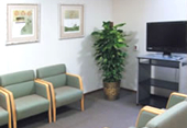 - ゆったりとした広さを持つ透析室には、ラウンジや個人用ロッカー、更衣室など各種設備を整えています。各ベッドでは液晶テレビ(無料)を配置している ほか、インターネットへのアクセスも可能です。