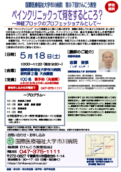「ペインクリニックって何をするところ?~神経ブロックのプロフェッショナルとして~」